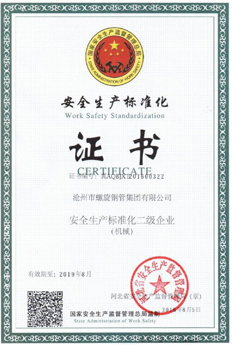 安全生產標準化證書
