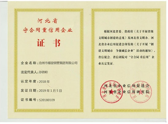 河北省守合同重信用企業